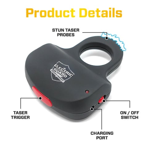 Instead of fumbling around looking for the right buttons to push, you simply tighten your grip to activate the electricity on top of the rings and stun your attacker!